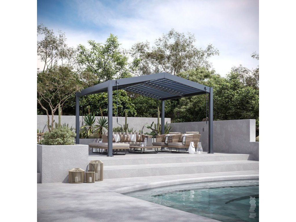 Prémiová zahradní hliníková volně stojící bioklimatická pergola o rozměrech 4x3,6 metrů představuje ideální způsob zastřešení Vašeho venkovního posezení.