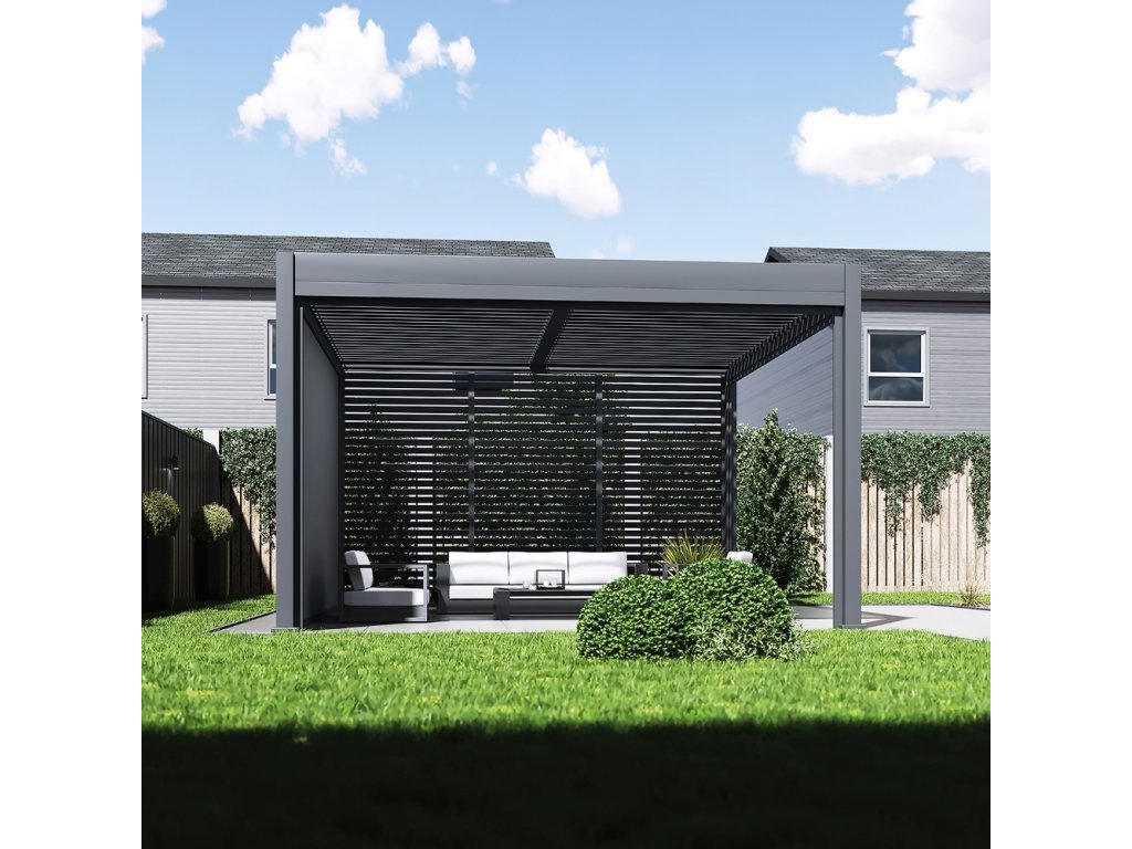 Prémiová zahradní hliníková volně stojící bioklimatická pergola o rozměrech 4x4 metry představuje ideální způsob zastřešení Vašeho venkovního posezení.