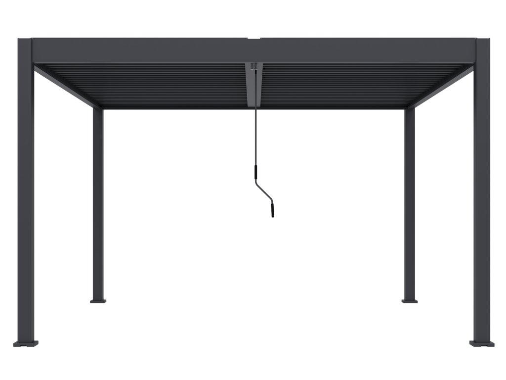 Lamely lze ovládat jednoduše manuálně pomocí kličky. Ta je navržena tak, abyste lamely mohli snadno otočit do požadované polohy a aby při otáčení lamel nedocházelo k poškrábání konstrukce pergoly. Zároveň je klička na konstrukci umístěna tak, aby při doplnění pergoly o zástěny či panely nebránila ve snadné manipulaci s těmito doplňky. Kličku můžete jednoduše sundat.