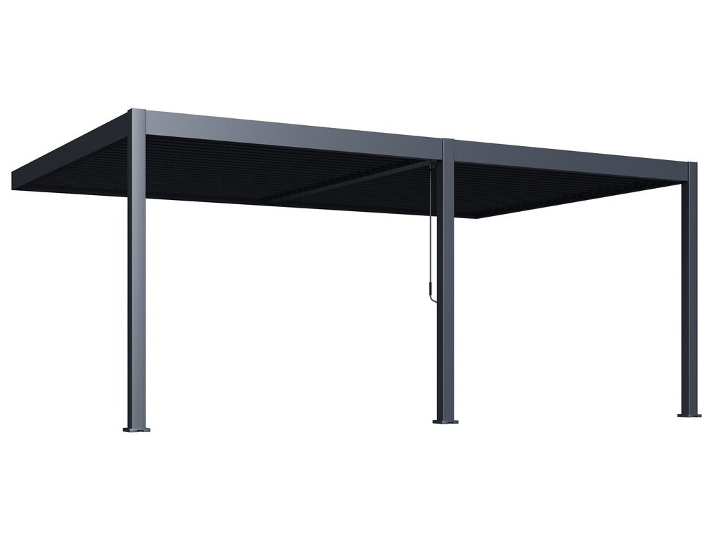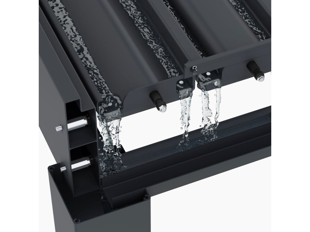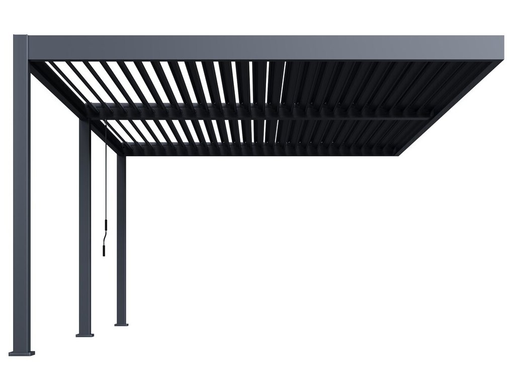 Velmi pevná a stabilní konstrukce v antracitové barvě RAL 7016, v matné povrchové úpravě se hodí do každého prostoru. Pergola je vyrobena z vysoce kvalitního hliníku, který je ošetřen práškovou barvou, což zaručuje odolnost vůči povětrnostním vlivům.