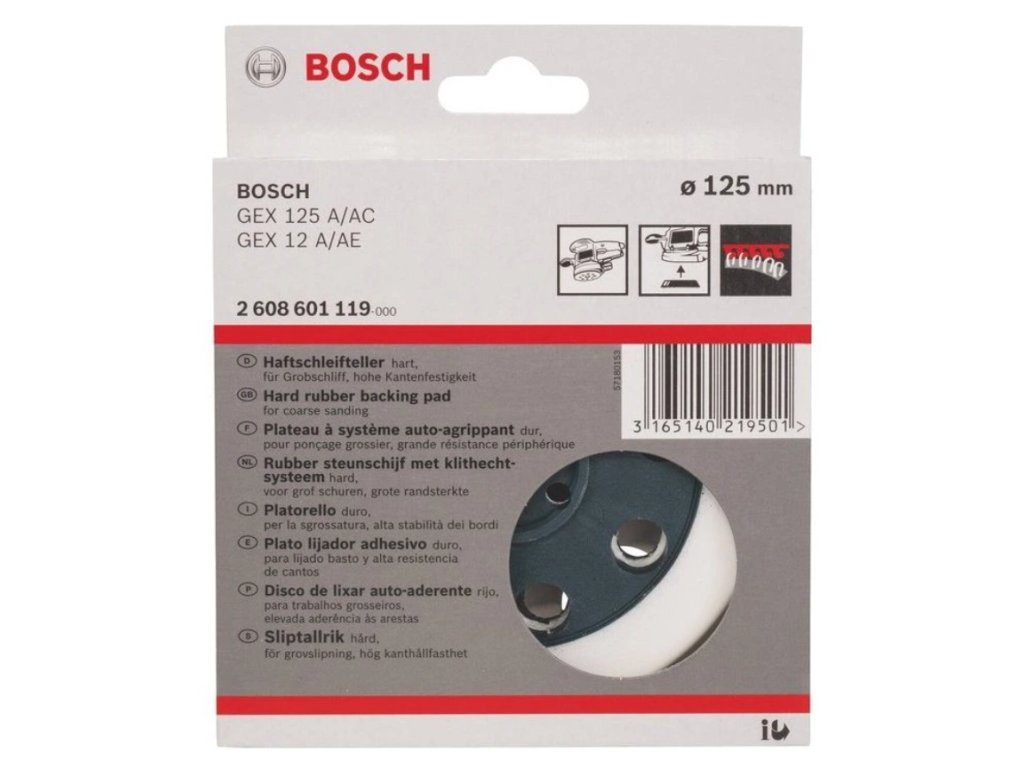 - Brusný talíř Bosch využijete pro excentrické brusky Bosch GEX 125 AC, GEX 12 A, GEX 12 AE a GEX 125 A