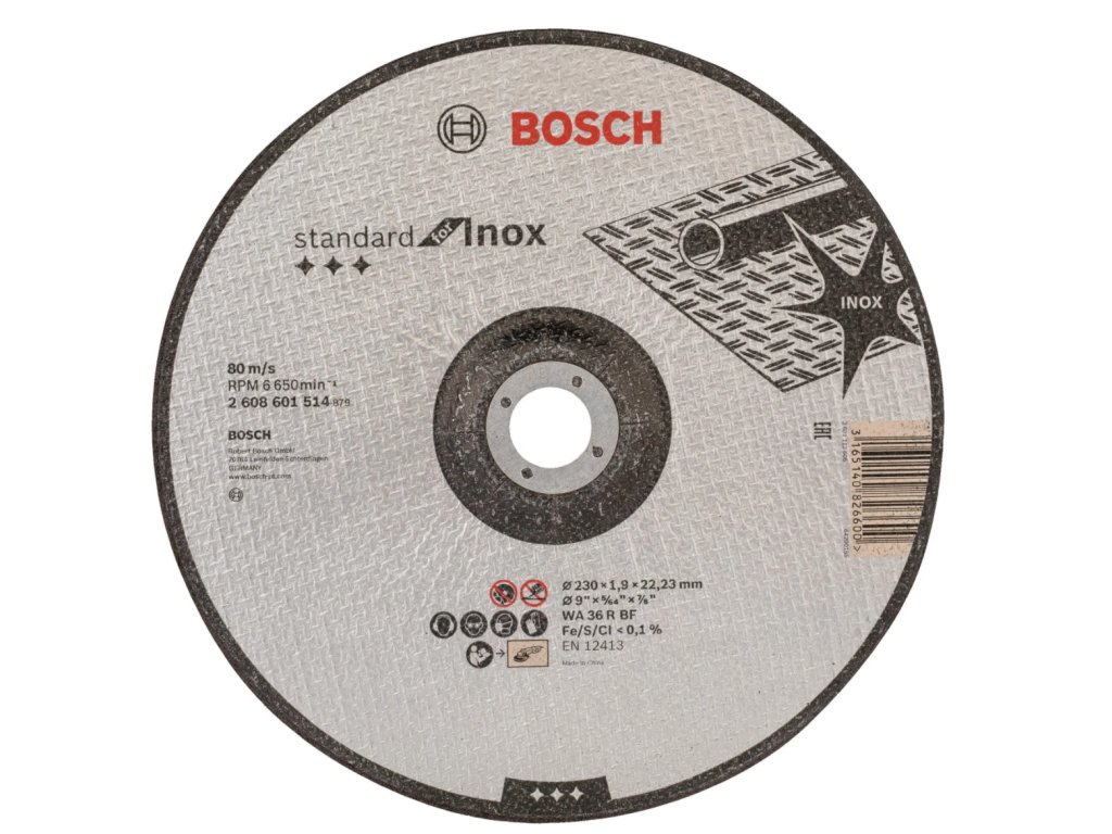 Hlavní vlastnosti produktu BOSCH Dělicí kotouč profil. Standard for Inox WA 36 R BF, 230 mm, 22,23 mm, 1,9 mm 2.608.601.514