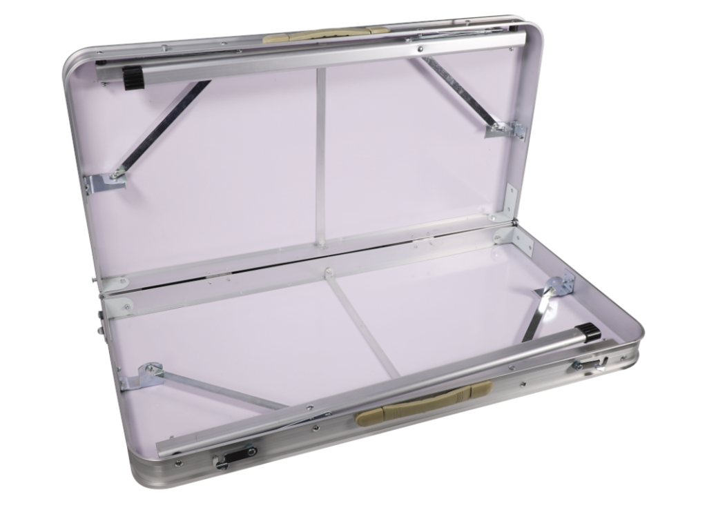 Skládací campingový stůl s deskou 4,5mm (MDF deska potažená plastem), světle šedá barva