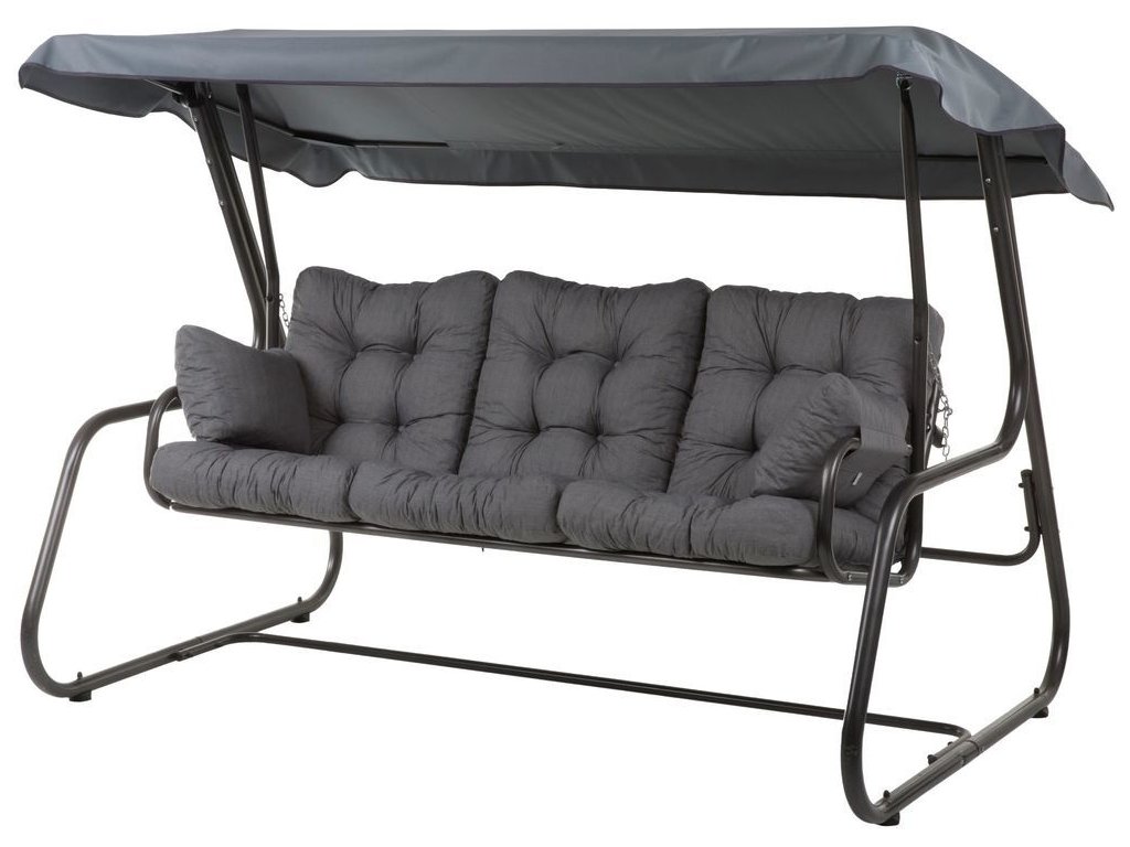 Houpačka pro 4 osoby s rozkládací sedačkou, která je upevněna na pružinách.
