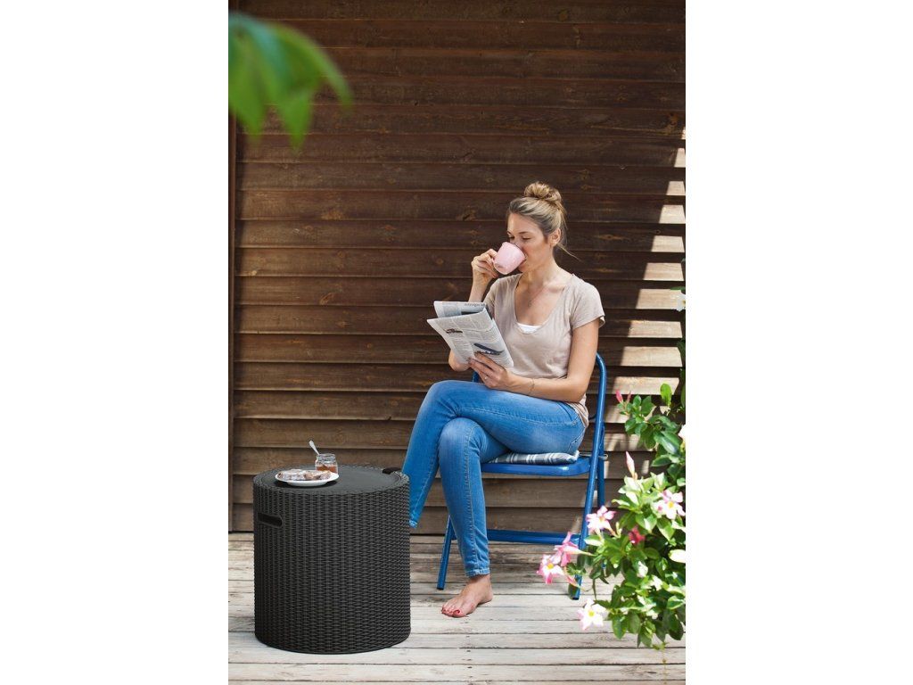 COOL STOOL je velmi praktický a šikovný stolek s doplňkovými úložnými funkcemi.
