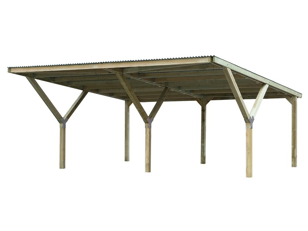 Díky zapuštěným opěrným sloupkům ve tvaru Y můžete pohodlně zaparkovat (více prostoru pro manipulaci při parkování a výjezdu). Díky průjezdné šířce 276 cm (2x) je zde dostatek místa pro váše auta. Kvalitně zpracované dřevo je tlakově impregnováno, a tím optimálně chráněno proti větru a povětrnostním vlivům. Dřevo pochazí z udržitelného lesnictví (certifikáty PEFC a FSC).