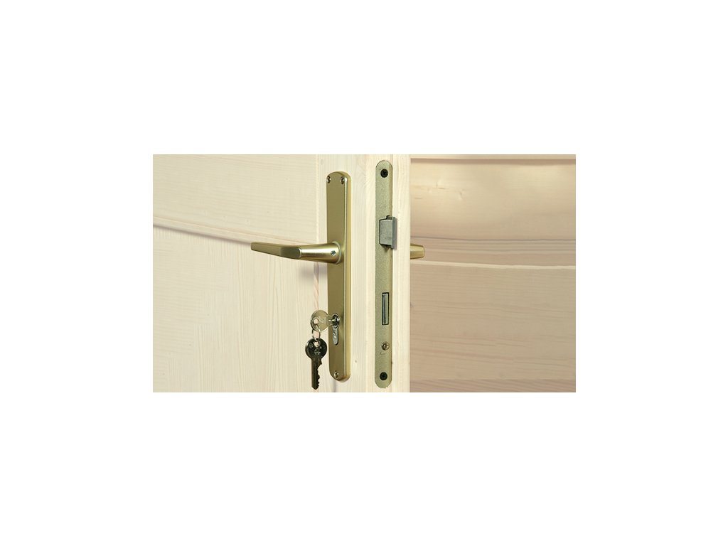 Odsazená šikmá střecha obsahuje dvě integrovaná střešní okna, která poskytují dostatek přirozeného světla. Na výrobu bylo použito výhradně kvalitní smrkové dřevo. Součástí stavebnice jsou bezpečné dvoukřídlé dveře s kvalitní sadou klik, cylindrickým zámkem.