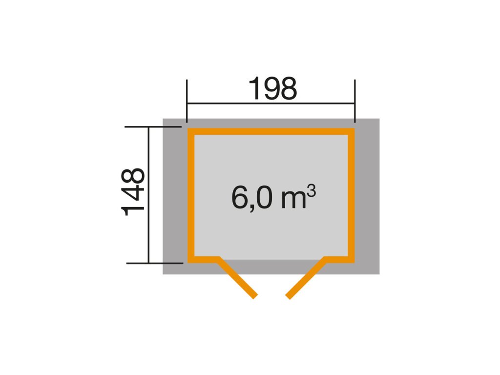 Základna domku (bez přesahu střechy) je 198 x 148 cm, podlaha z masivního dřeva o tloušťce 15,5 mm, šikmá střecha z masivního dřeva o tloušťce 16 mm a síle stěny 19 mm zajišťují potřebnou stabilitu.
