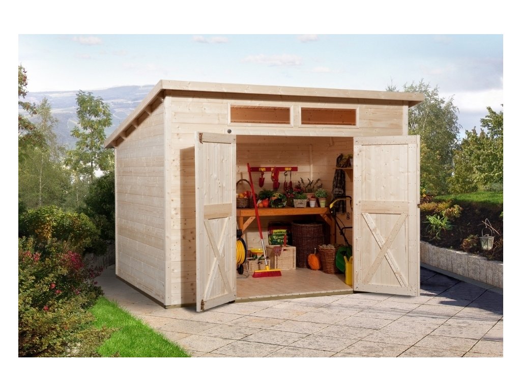 Zahradní domek WEKA 325 A z masivního dřeva vám nabízí více úložného prostoru na vaší zahradě.