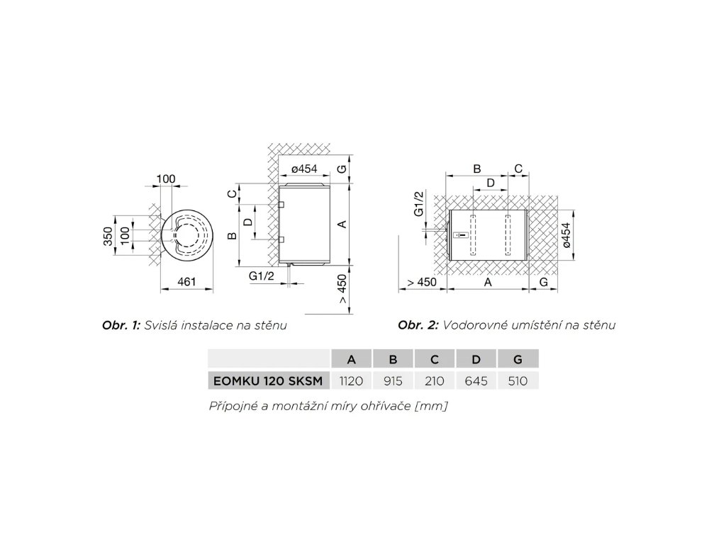 Svislá nebo vodorovná nástěnná montáž. Při vodorovné nástěnné montáži musí být, při pohledu na bojler zepředu, vývody vždy vlevo