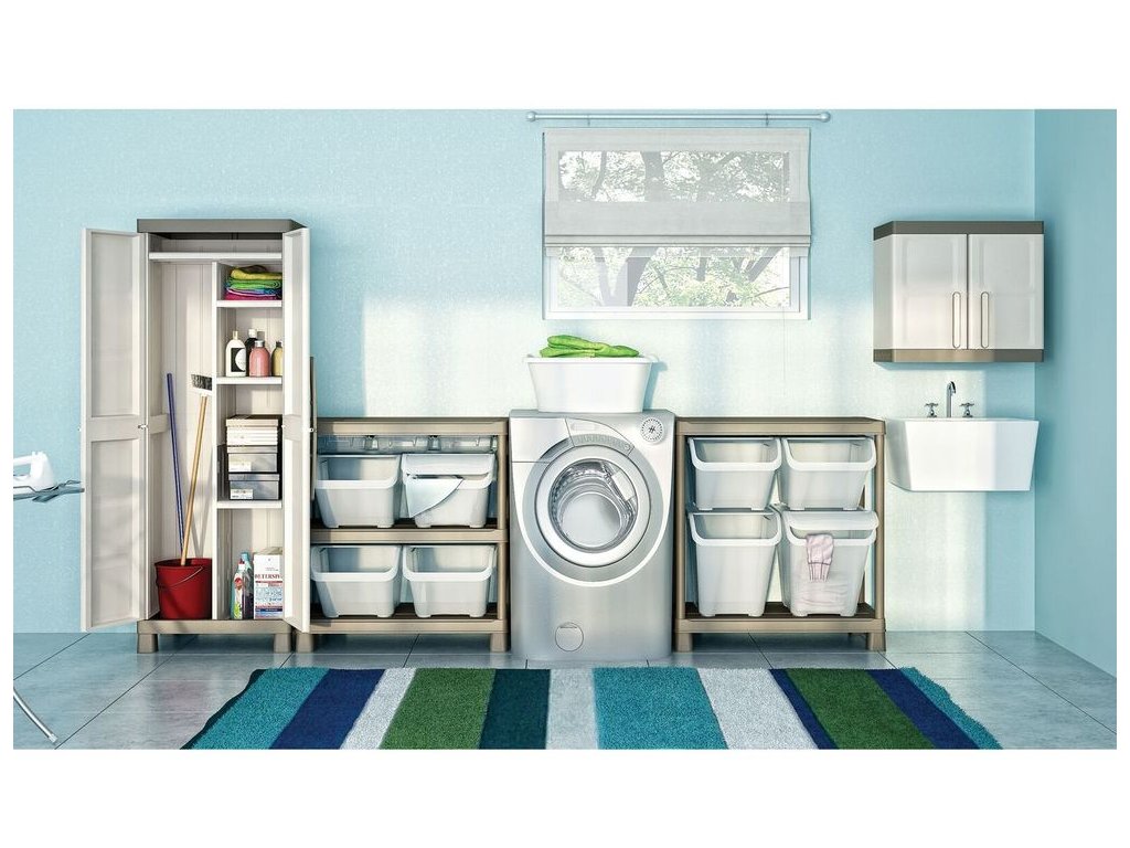 Nízká plastová skříň LOW obsahuje 2 poličky, z nichž každá unese 15 kg.