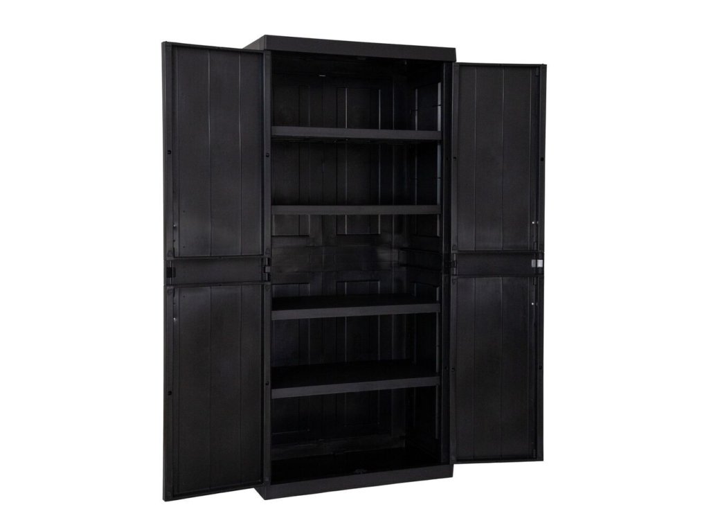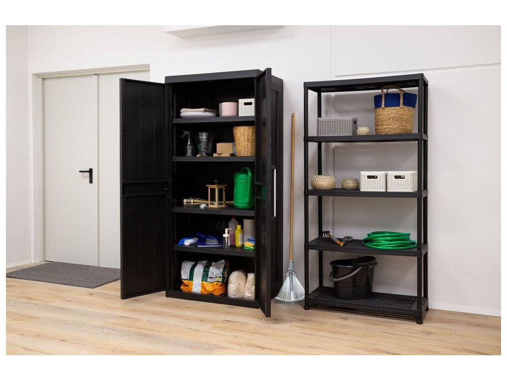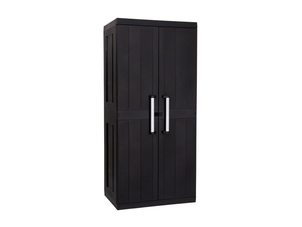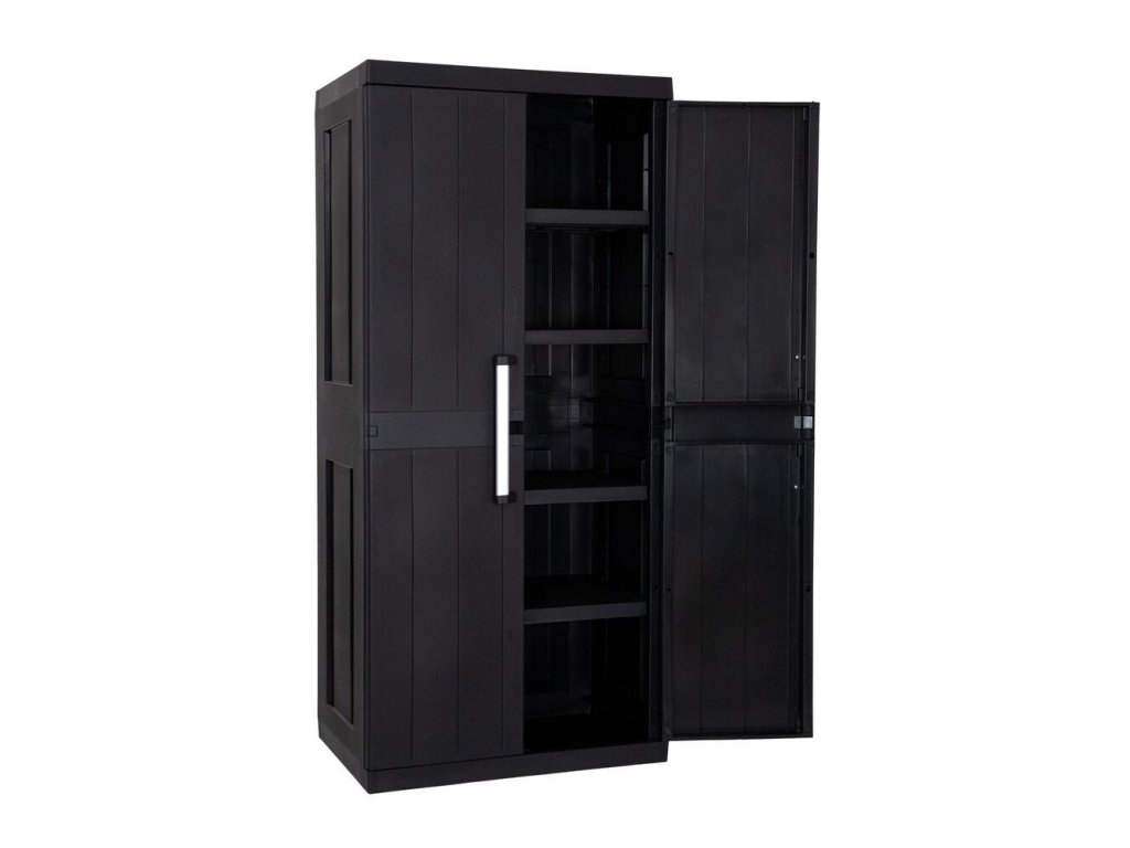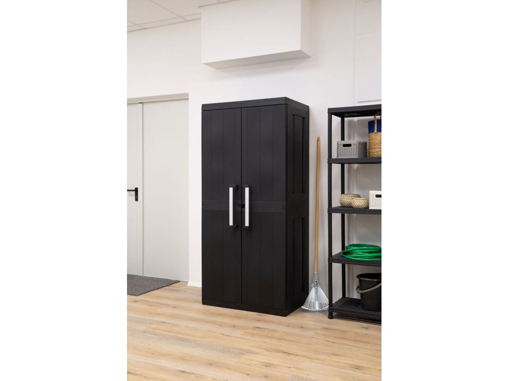 Velká praktická plastová dvoukřídlá skříňka GARAGE MEGA HIGH v černé barvě.