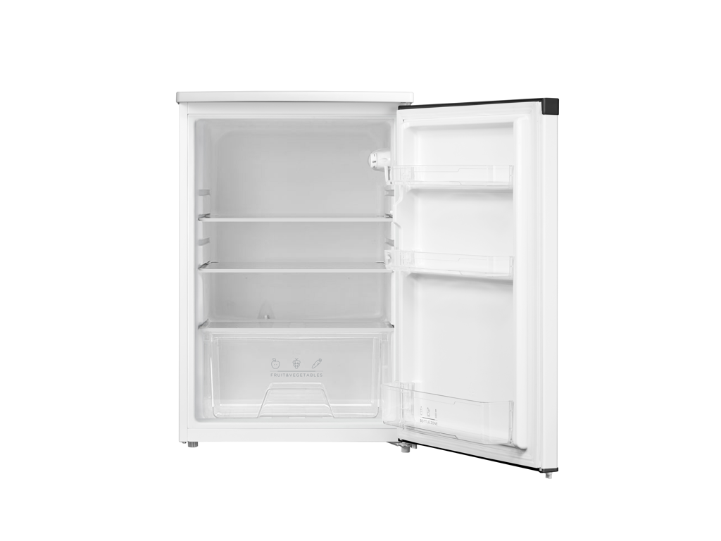 Objem chladničky 121 l. Energetická třída E, mechanické ovládání s nastavitelným termostatem. 3 skleněné police, prostorná zásuvka na zeleninu a ovoce, 3 přihrádky ve dveřích. Hlučnost 40 dB. Rozměry: 85 x 55 x 57 cm.
