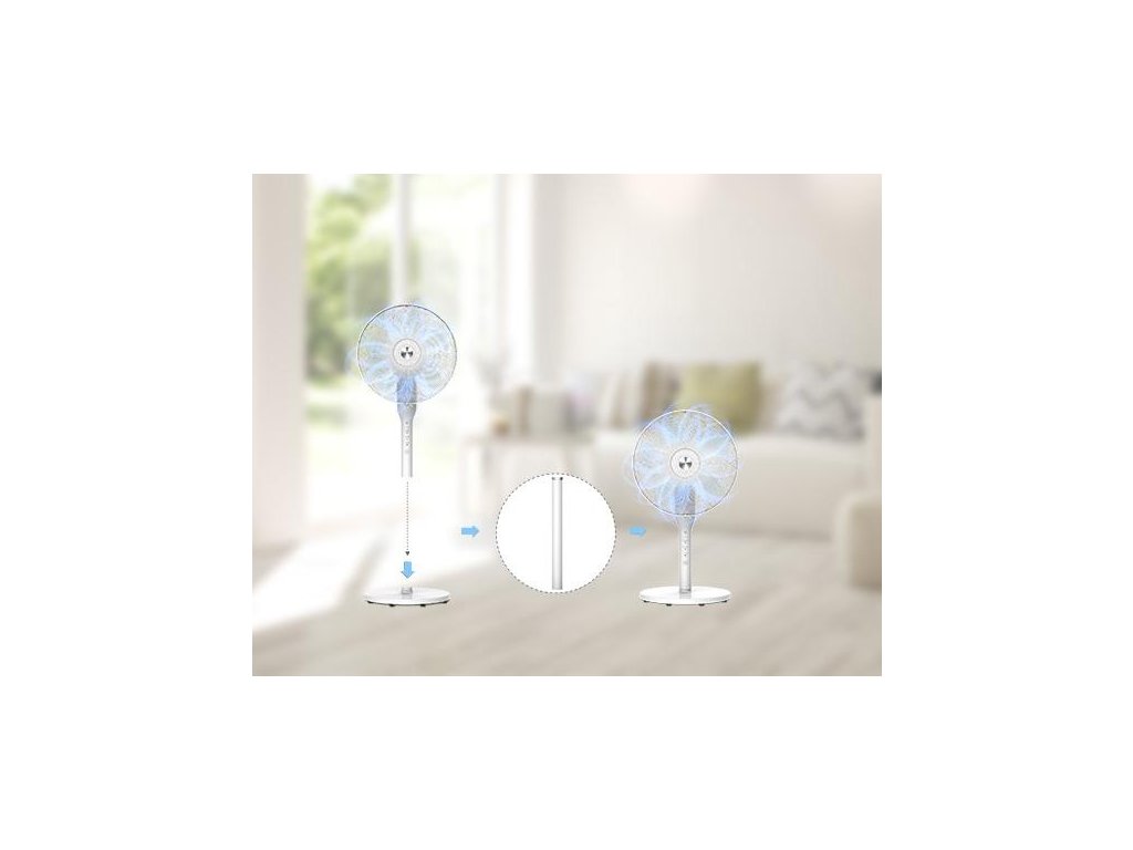 Funkce oscilace umožňuje rovnoměrné rozptýlení vzduchu po celé místnosti, takže se svěží vánek dostane do všech koutů prostoru. Nastavitelný stojan ventilátoru umožňuje upravit jeho výšku podle aktuálních požadavků a prostoru, což zvyšuje flexibilitu a pohodlí při používání. Ventilátor je navržen s důrazem na jednoduché a intuitivní ovládání, které zvládne opravdu každý člen domácnosti.