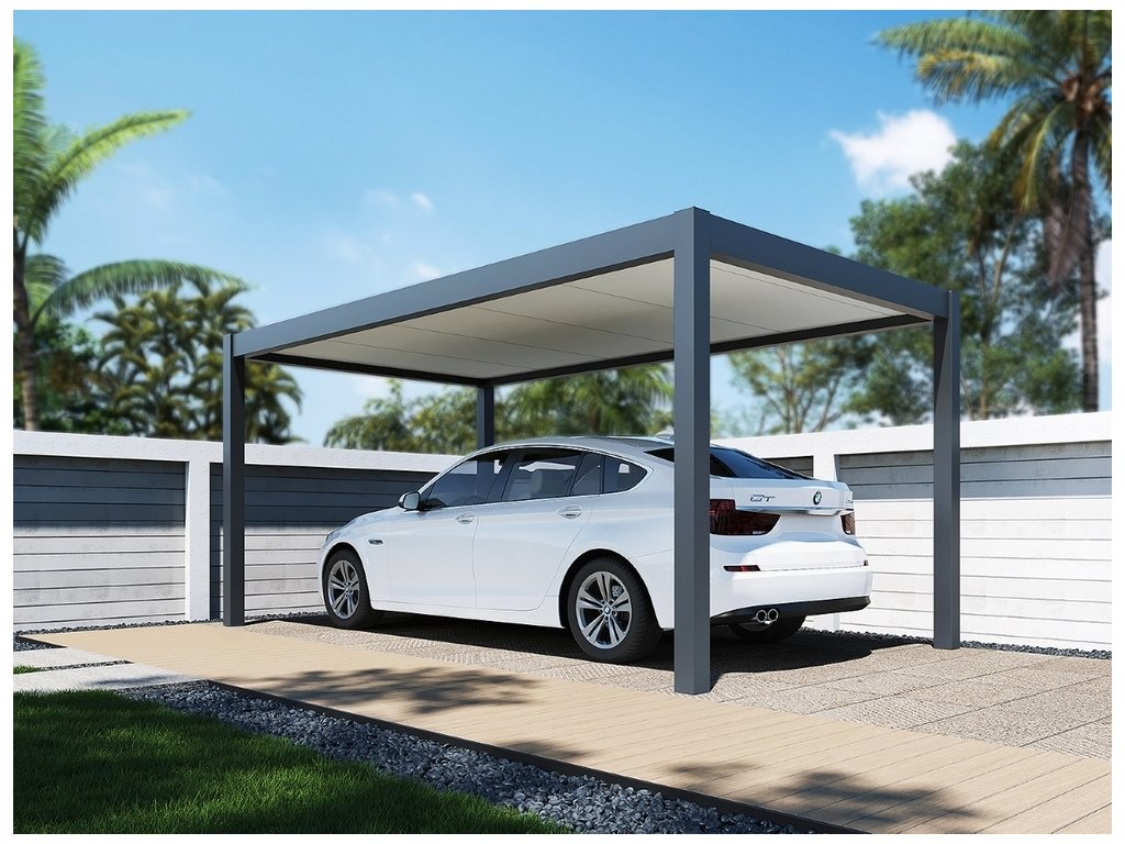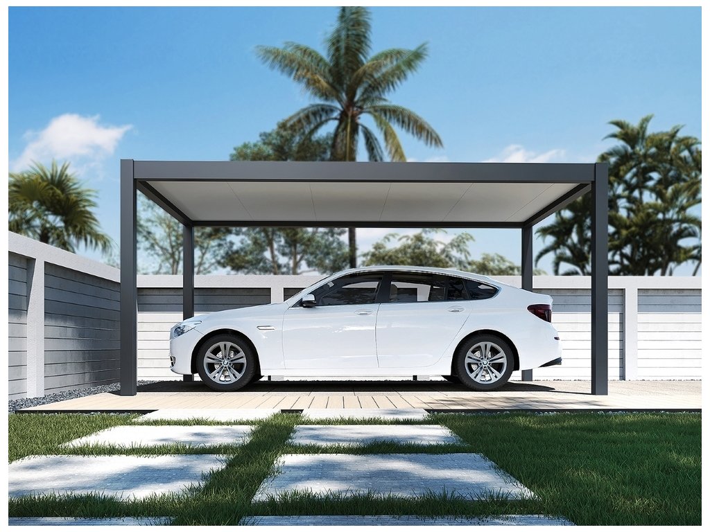 Prémiový hliníkový přístřešek na auto o rozměrech 5,3x3 metry představuje ideální způsob zastřešení parkovacího místa. Vzhledem k parametrům může stejně dobře sloužit jako pergola pro Vaše venkovní posezení.