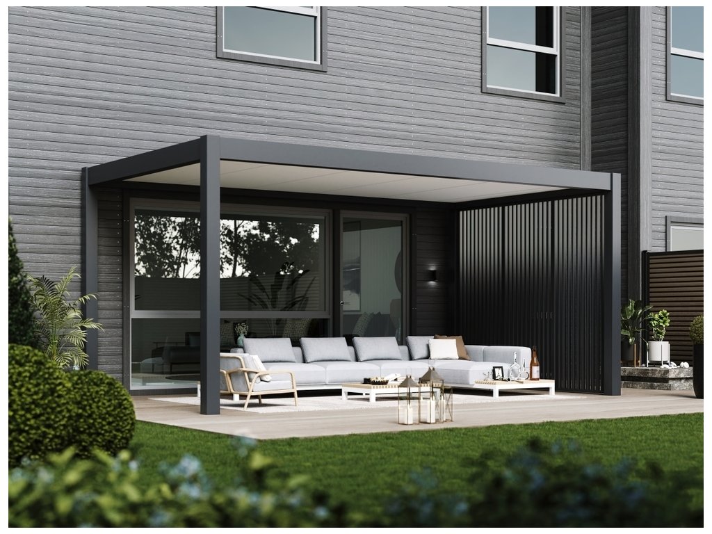 Kteroukoliv stranu pergoly lze doplnit o stěnu z WPC panelů. Tyto pevné panely poskytnou dodatečné uzavření přístřešku a vylepší tak ještě vlastnosti samotného přístřešku či pergoly.