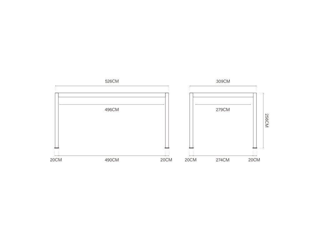Třímetrové strany je možné doplnit o příslušenství v podobě zástěny či panelů. Třemi metrovými panely zcela zastíníte tyto strany. U delší strany přístřešku je také možné využít panely, pro dodatečné zastínění nebo jako designový prvek, jen prosím počítejte s tím, že ji zcela nevyplníte.