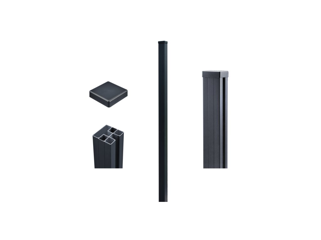 Hliníkový sloupek o výšce 240 cm v moderním antracitovém provedení je určen pro zabetonování do země.
