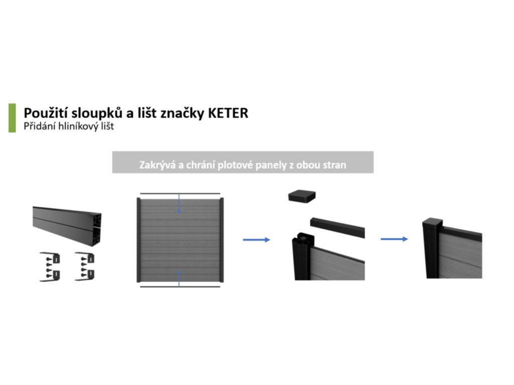 V kombinaci s plotovými panely značky KETER vytovříte moderní plot, který zajišťuje naprosté soukromí, ochranu před větrem, hlukem i zvědavými pohledy. Pro sestavení plotu doplňte o panely a lišty.