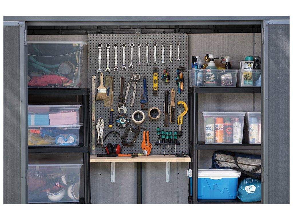 Domek je ideální nejen na uschovávání nářadí a zahradních doplňků, ale také na sekačku nebo grill.