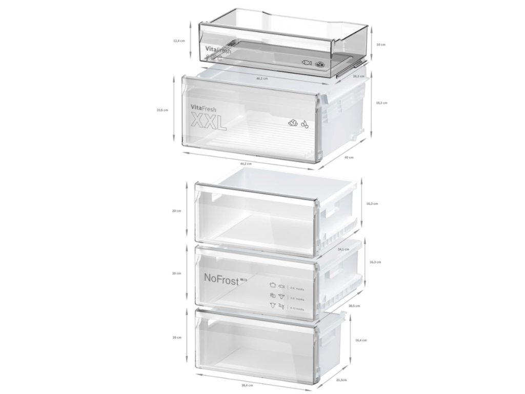 Spolehněte se na dostatek prostoru pro všechny potraviny. Lednice disponuje velkými šuplíky VitaFresh XXL. Jedna zásuvka nabízí nižší teplotu o 0 °C, a je tak ideální pro uchovávání čerstvého masa či ryb. O ovoce a zeleninu se postará zásuvka s řízeným klimatem, která jim dodá dlouhotrvající čerstvost.