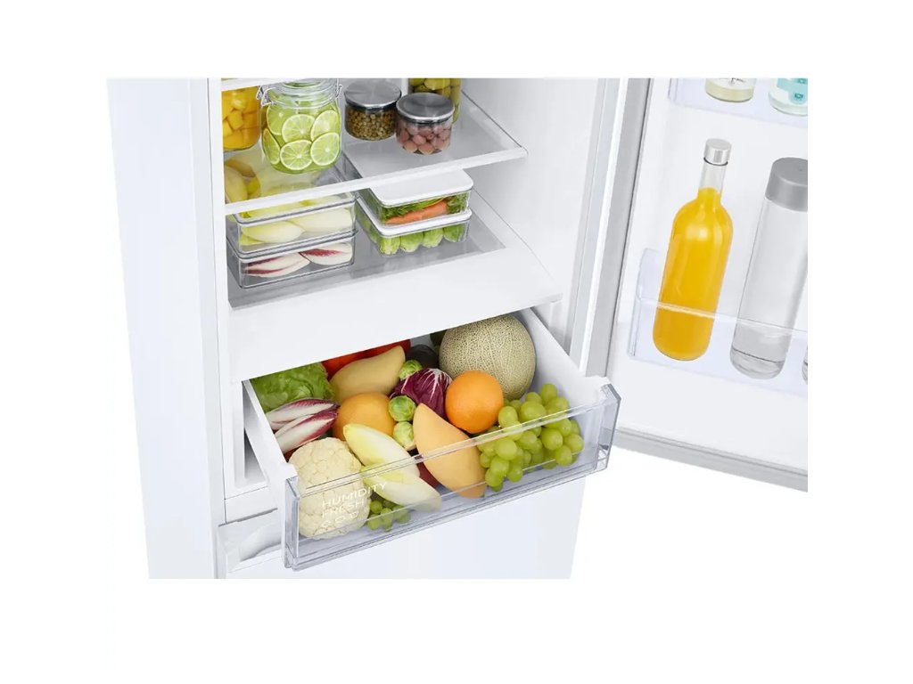 Kombinovaná chladnička Samsung RB38C600EWW/EF přichází s kapacitou 390 l, z čehož 276 l tvoří objem chladící části. S tímto spotřebičem tedy získáte vynikající prostor pro uschování jídla celé rodiny. Větší nákup či očekávaná návštěva už pro vás nebudou problém. I přes tuto kapacitu a skvělý výkon dosahuje hladina hlučnosti této chladničky maximálně 35 dBA, což je úroveň, která vás nebude vyrušovat ani v otevřených prostorech. Vnitřní uspořádání je promyšlené – 4 přihrádky ve dveřích, 4 police v chladící části a 3 zásuvky v mrazáku. Pro ještě větší přehlednost jsou zde navíc zásuvky na ovoce a zeleninu či organizéry na vajíčka. V potravinách se tak neztratíte.