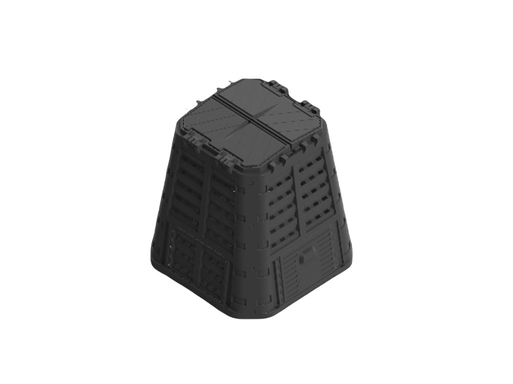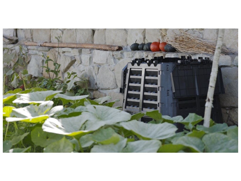 Plastový kompostér o objemu 480 L z velmi pevného polypropylenu. Konstrukce zajišťuje cirkulaci vzduchu a urychluje rozkladný proces. Součástí výrobku je víko i boční dvířka pro snadné vyjímání kompostu. Kompostér je odolný vůči povětrnostním podmínkám, UV záření a můžete ho mít venku za každého počasí -30 °C až 45 °C. Montáž je velmi jednoduchá, díky CLICK systému není zapotřebí žádné nářadí. Vyrobeno z recyklovaného materiálu.