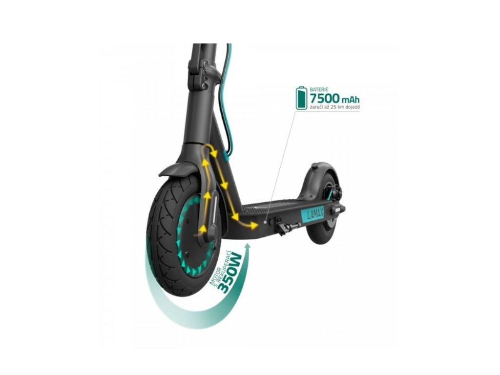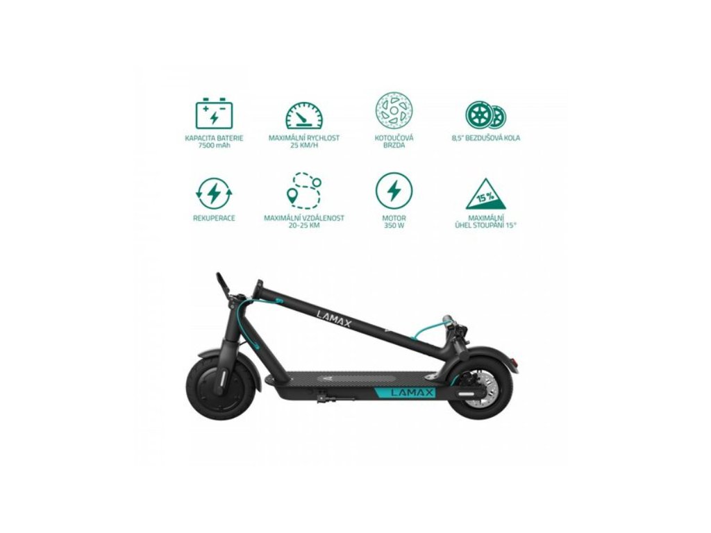 Elektrická koloběžka Lamax S7500 Plus samozřejmě myslí na vaše bezpečí i na maximální pohodlí při jízdě. S kotoučovou brzdou si můžete být jisti, že skutečně zabrzdíte. Nášlapná plocha je potažena protiskluzovým ABS povrchem, takže neklouže, a kromě toho je koloběžka vybavená pojistkou proti nechtěnému rozjezdu, předním i zadním LED světlem a nechybí ani bezpečnostní reflexní prvky po stranách kol! Díky velkým 8.5" bezdušovým antifefektovým pneu si užijete vždy pohodlnou jízdu, nechybí vyztužený blatník, praktický stojánek či zvonek. Svou výbavu lze navíc rozšířit o kvalitní příšlušenství přímo od LAMAX a díky široké dostupnosti náhradních dílů můžete jezdit opravdu bez starostí.