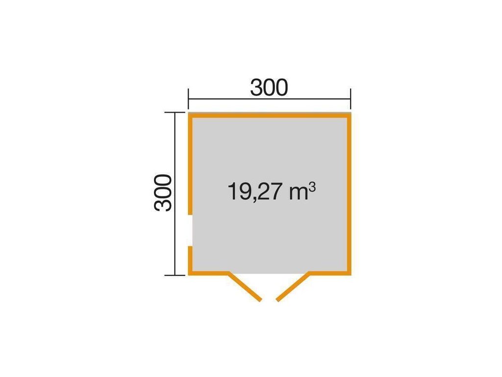 Základna domku je 300 x 300 cm, síle stěny 28 mm, podlaha z masivního dřeva o tloušťce 15 mm. Konstrukci lze jednoduše postavit díky šroubovacímu systému.
