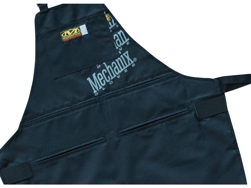 Při vývoji této zástěry bylo využito mnoho zkušeností z minulosti a designové prvky byly zdokonaleny. Takovými prvky jsou horní náprsní kapsa a spodní středový rozparek. Konstrukce z balistického nylonu, dvojité prošívání, nastavitelné široké popruhy kolem krku a pasu, vnitřní kapsy na zavěšení a oboustranná poutka na zavěšení na kladivo. To vše přispívá k funkčnosti a užitečným funkcím zástěry Mechanix Wear Apron. Odolné vůči vodě a některým rozpouštědlům a lze je prát v pračce.