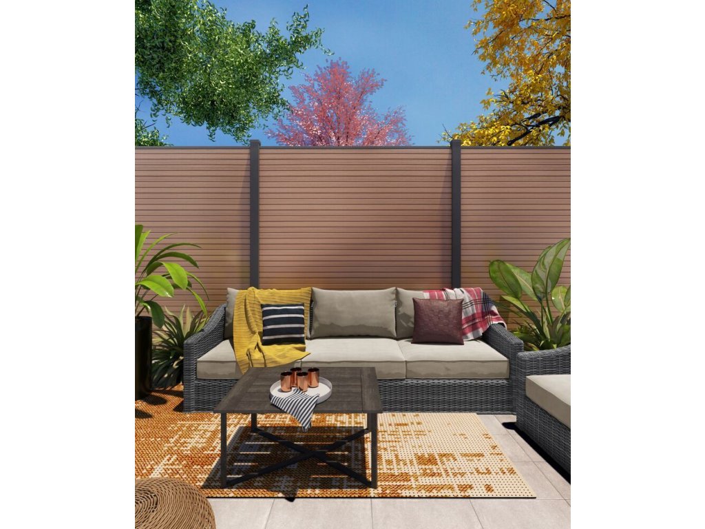 Luxusní plotový panel MODERN z kvalitního WPC materiálu spojuje elegantní vzhled a vysokou odolnost. Panel tvoří 12 pevných plotových latí doplněných o horní a spodní hliníkovou ukončovací lištu. Moderní teaková barva dodá vaší zahradě či pozemku nadčasový styl, který si zachová sytost a krásu po mnoho let.