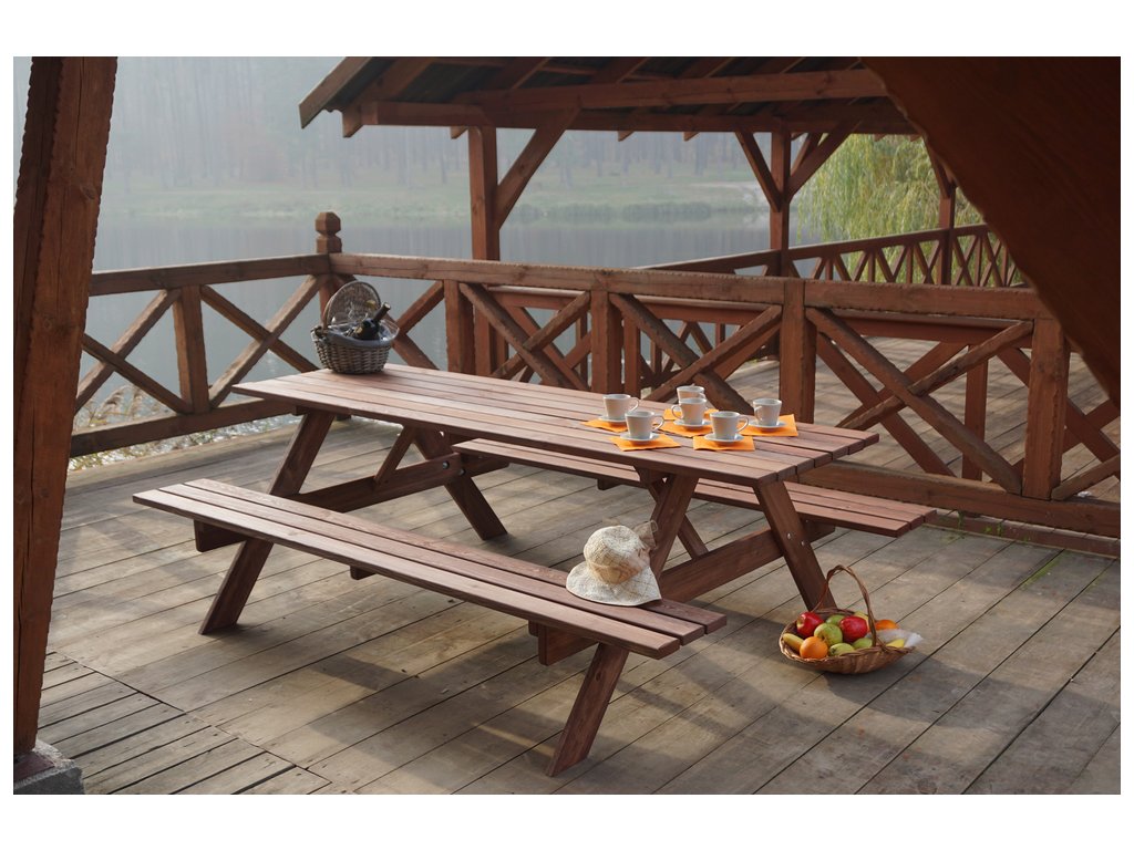 PIKNIK zahradní set dřevěný SE SKLOPNÝMI LAVIČKAMI - 180 cm - mořený