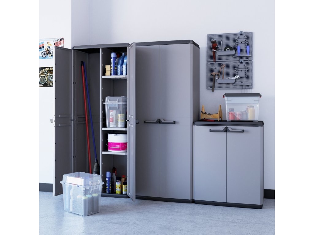 Pevné panty, možnost uzamčení a odolnost skříně patří mezí její přednosti. Díky praktickému designu zapadne téměř do každého prostoru a poskytne úkryt pro mnoho pomůcek, nářadí a vybavení.