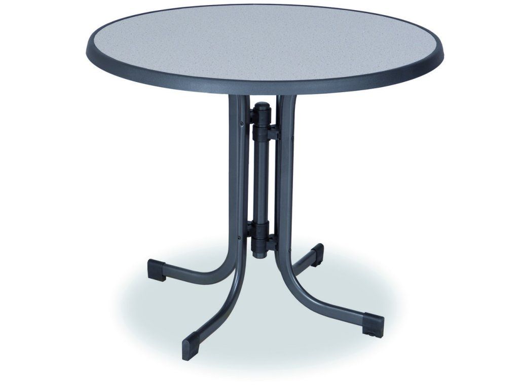Kulatý skládací stůl s kovovou pevnou konstrukcí a odolnou vrchní deskou sevelit.