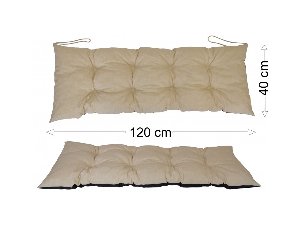 Univerzální polstr o velikosti 120x40 cm. Vrchní část polstru je vyrobena z odolné látky 80% bavlna a 20% polyester. Spodní část polstru je vyrobena z černé voděodolné tkaniny. Polstr je plněný molitanovou drtí, která je měkká a zajišťuje trvalý komfort sezení. Polstr je vhodný na paletové sezení, na lavičky nebo houpačky.