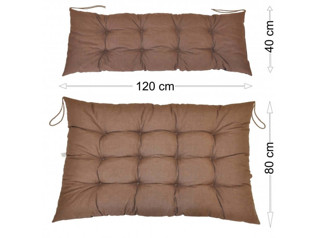Sada polstrů na paletové sezení. Sada polstrů obsahuje: - sedací polstr o velikosti 120x80 cm - opěradlový polstr o velikosti 120x40 cm Polstry jsou vyrobeny z velice kvalitní látky. Plněny jsou drceným molitanem. Spodní část polstrů je vyrobena z voděodolné látky. Polstry tak můžete použít například i na trávníku aniž by absorbovaly vlhkost, a pokud se zespod ušpiní, lehce je očistíte vlhkým hadříkem. Sedací polstr je prošitý na dvanácti místech, což zaručuje rovnoměrné rozložení náplně a tím i pohodlné sezení. Polstry jsou opatřeny tkaniceni pro lepší uchycení k paletám či jinému nábytku.Doplňkové parametry