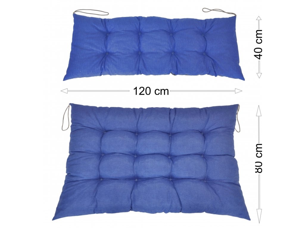 Sada polstrů na paletové sezení. Sada polstrů obsahuje: - sedací polstr o velikosti 120x80 cm - opěradlový polstr o velikosti 120x40 cm Polstry jsou vyrobeny z velice kvalitní látky. Plněny jsou drceným molitanem. Spodní část polstrů je vyrobena z voděodolné látky. Polstry tak můžete použít například i na trávníku aniž by absorbovaly vlhkost, a pokud se zespod ušpiní, lehce je očistíte vlhkým hadříkem. Sedací polstr je prošitý na dvanácti místech, což zaručuje rovnoměrné rozložení náplně a tím i pohodlné sezení. Polstry jsou opatřeny tkaniceni pro lepší uchycení k paletám či jinému nábytku.Doplňkové parametry
