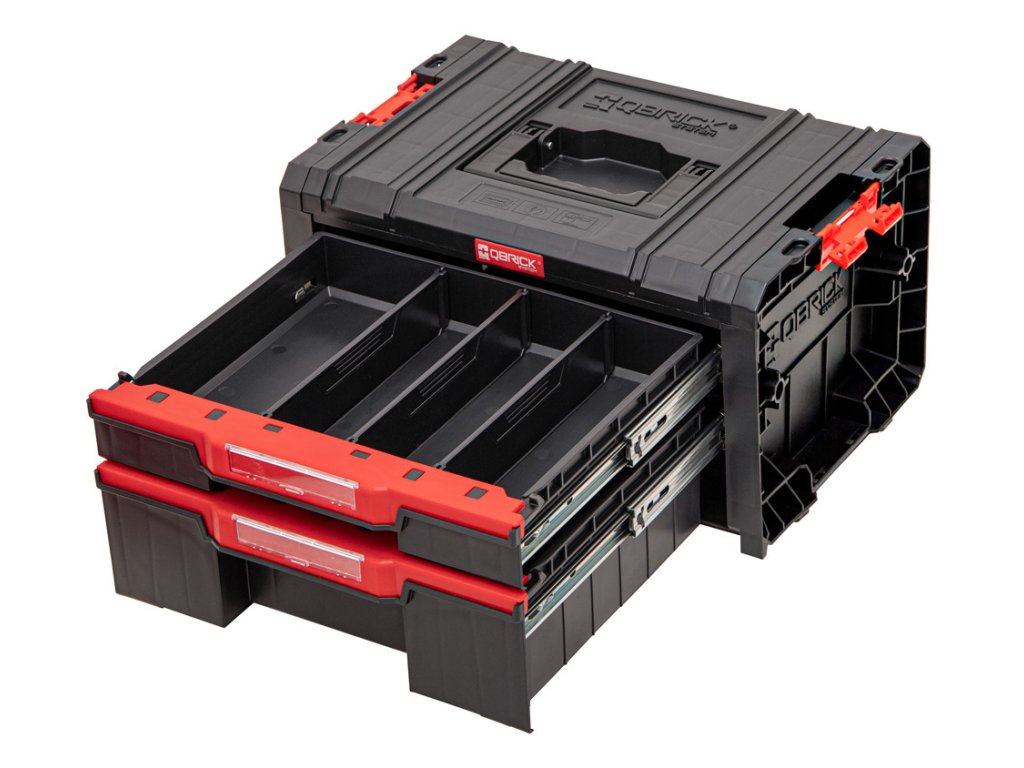 Pohodlná rukojeť poskytuje pohodlí při přenášení nářadí. Automatický systém uzamykání zásuvek proti vytažení zaručuje vysoký komfort při používání boxu.