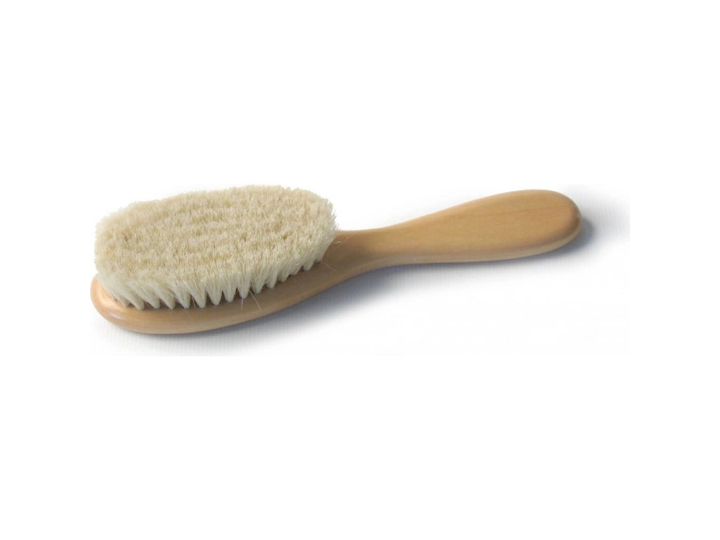V bodech: dětský kartáč na vlasy pro děti od 6 měsíců ideální pro první vlásky Vašeho miminka vhodný pro citlivou pokožku a vlasy dítěte s extra měkkými kozími štětinami ergonomicky tvarovaná rukojeť z přírodního bukového dřeva příjemný na dotyk.