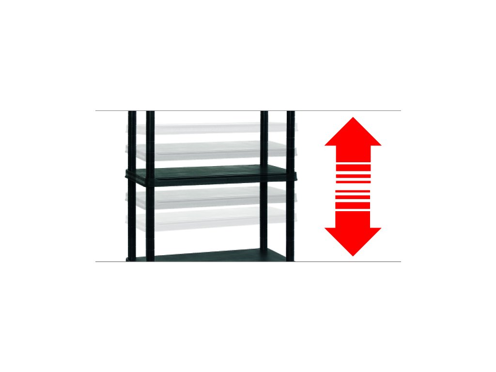 - přizpůsobíte si prostor přesně na míru (police jsou posunovatelné nahoru a dolů)