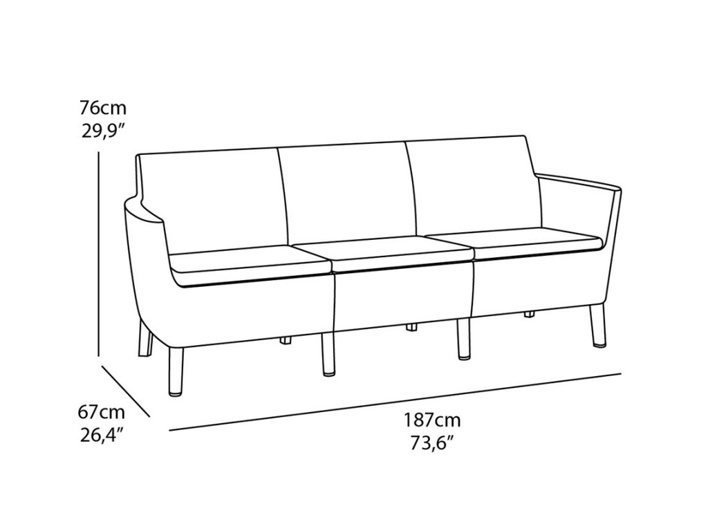 Jedná se o elegantní trojmístné sofa v imitaci ratanu.
