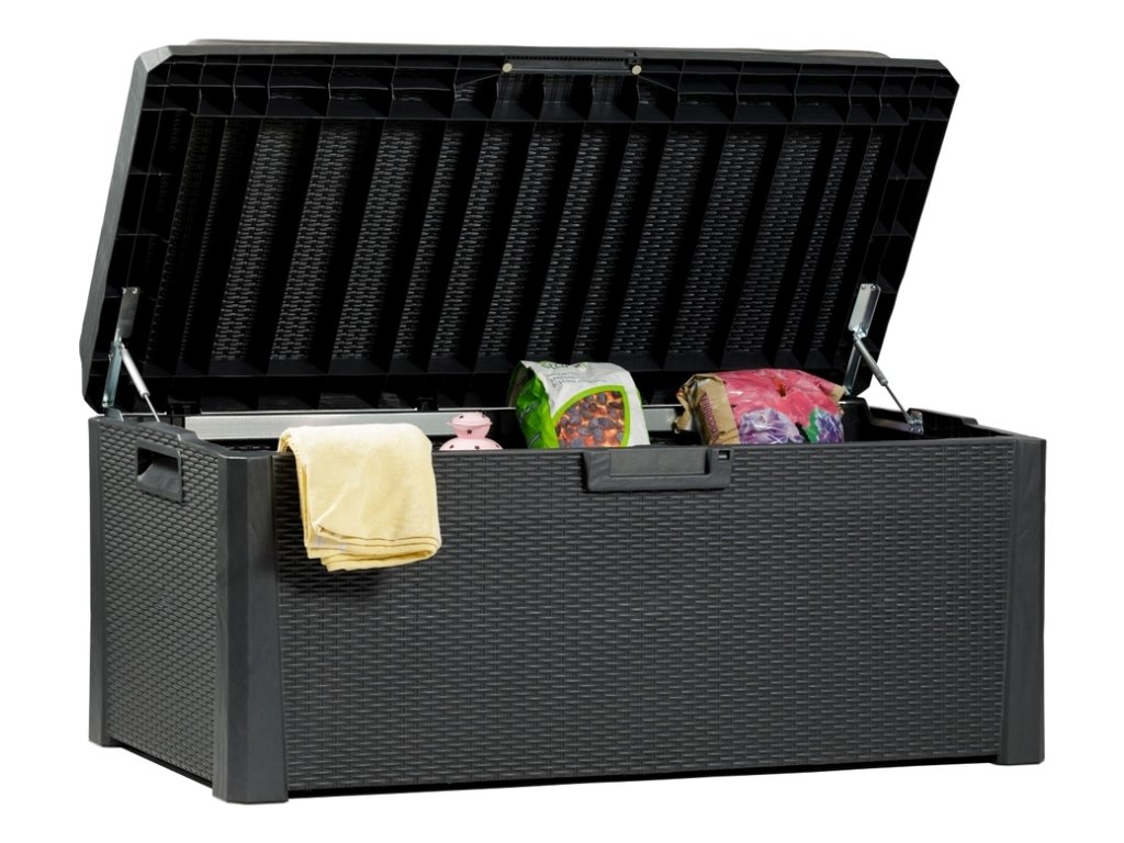 Tento box je ideální pro uložení podušek, hraček nebo nářadí, ale co je nejdůležitější, nabízí také pohodlné místo k sezení. S pohodlnou poduškou na víku a nosností až 360 kg se stává oblíbeným místem k odpočinku.