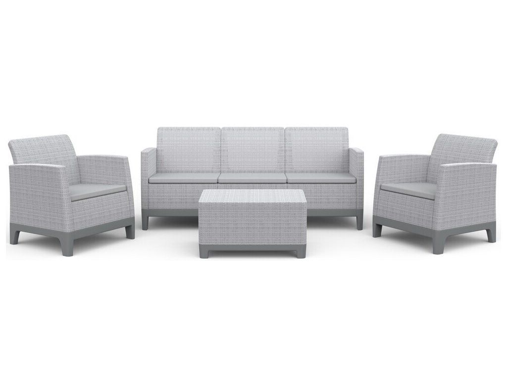 Velkou výhodou je rychlá montáž bez použití nářadí, díky které je sada připravena k použití během několika minut. Součástí setu jsou dvě pohodlná křesla, trojmístné sofa a praktický stolek s úložným prostorem, ideální pro uložení drobností, polštářků nebo zahradních doplňků.