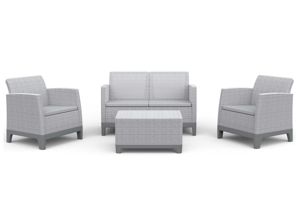 Velkou výhodou je rychlá montáž bez použití nářadí, díky které je sada připravena k použití během několika minut. Součástí setu jsou dvě pohodlná křesla, dvojmístné sofa a praktický stolek s úložným prostorem, ideální pro uložení drobností, polštářků nebo zahradních doplňků.