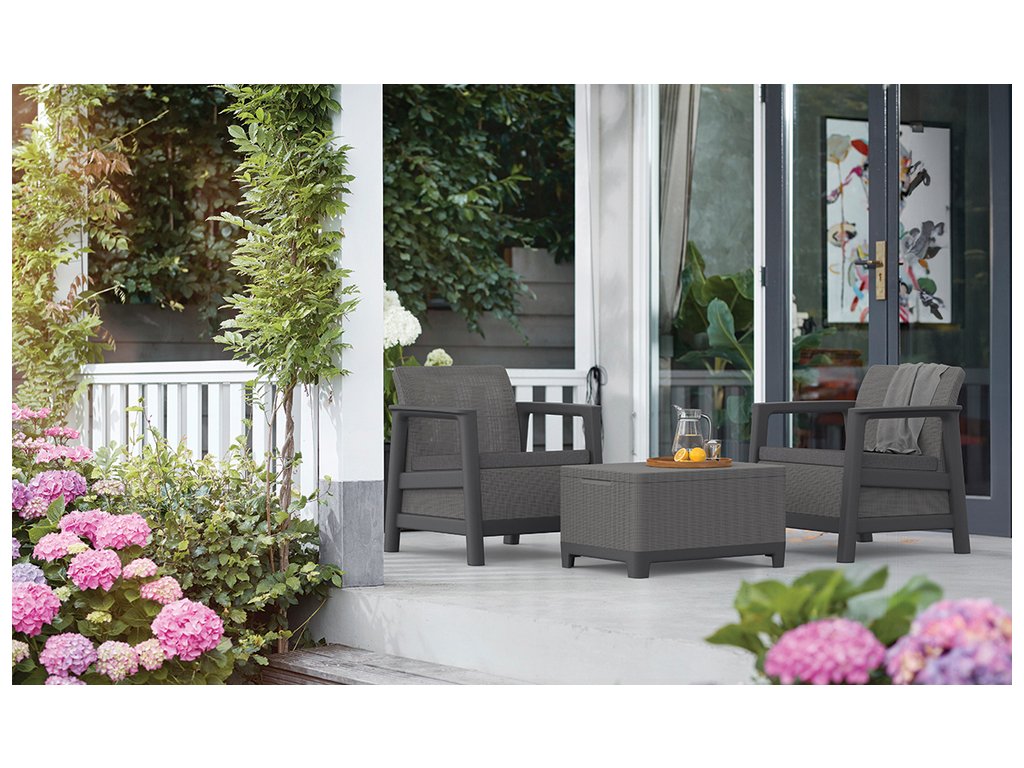Velkou výhodou je rychlá montáž bez použití nářadí, díky které je sada připravena k použití během několika minut. Součástí setu jsou dvě pohodlná křesla a praktický stolek s úložným prostorem, ideální pro uložení drobností, polštářků nebo zahradních doplňků.