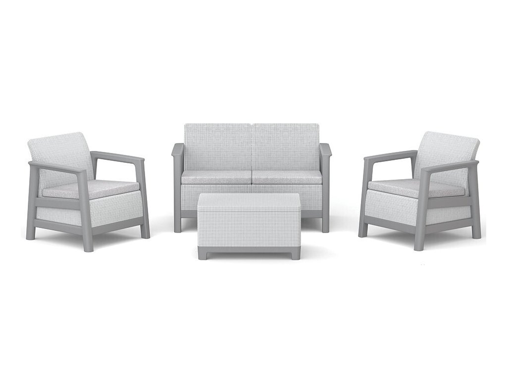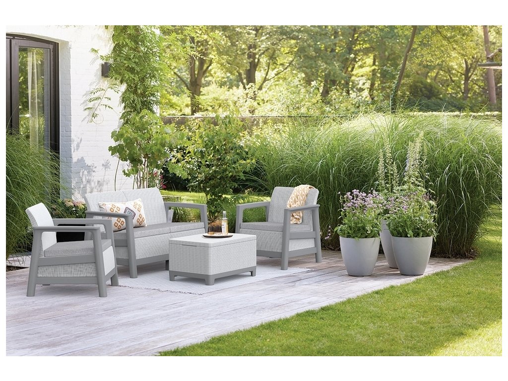 Velkou výhodou je rychlá montáž bez použití nářadí, díky které je sada připravena k použití během několika minut. Součástí setu jsou dvě pohodlná křesla, dvojmístné sofa a praktický stolek s úložným prostorem, ideální pro uložení drobností, polštářků nebo zahradních doplňků.