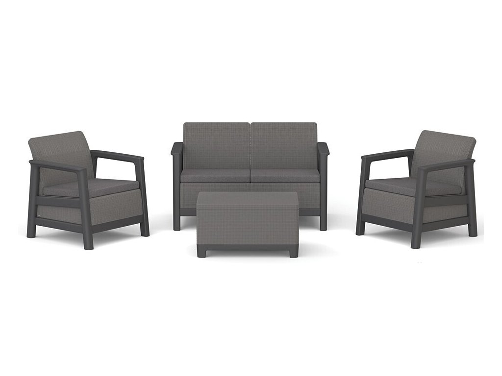Velkou výhodou je rychlá montáž bez použití nářadí, díky které je sada připravena k použití během několika minut. Součástí setu jsou dvě pohodlná křesla, dvojmístné sofa a praktický stolek s úložným prostorem, ideální pro uložení drobností, polštářků nebo zahradních doplňků.