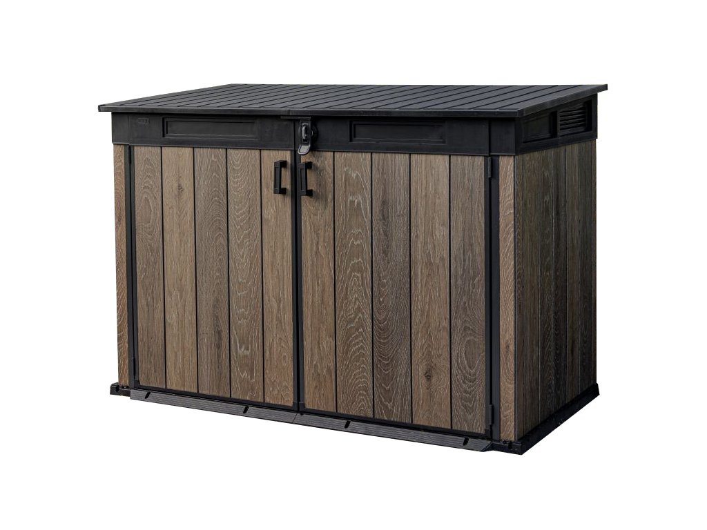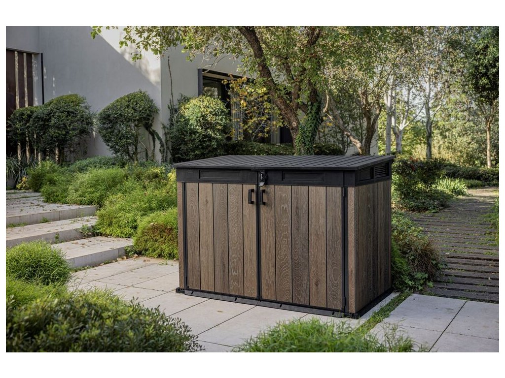 Skříň SIGNATURE 2 020 l od značky Keter nabízí elegantní a praktické řešení pro uložení popelnic, ale i dalšího zahradního náčiní.