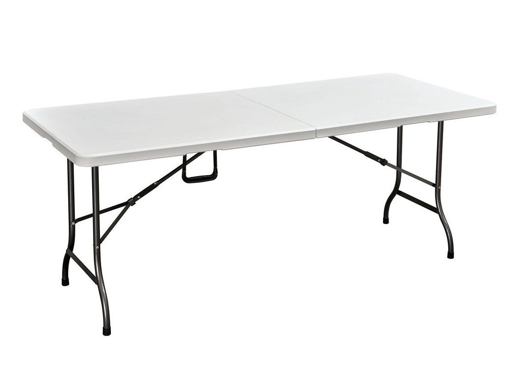 Skládací stůl z velice pevného materiálu HDPE s ocelovou konstrukcí.