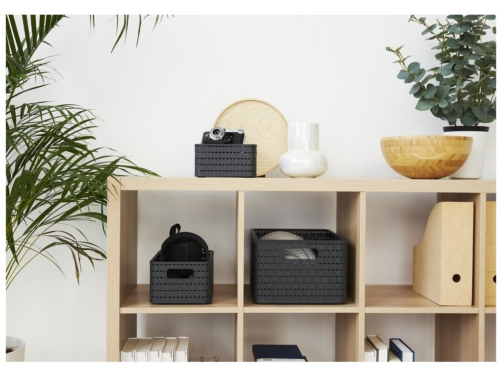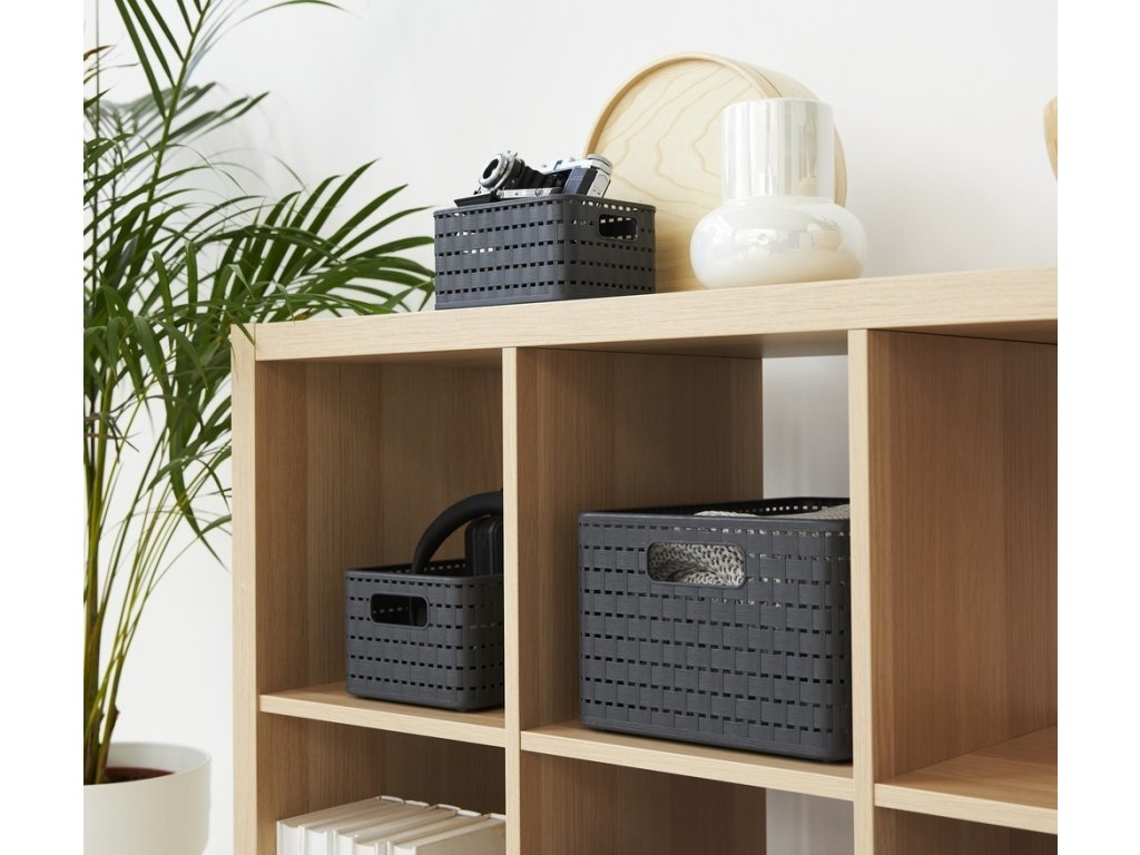 Plastový úložný box ve stylu ratanového výpletu.